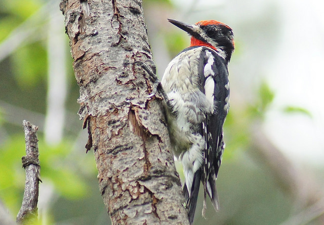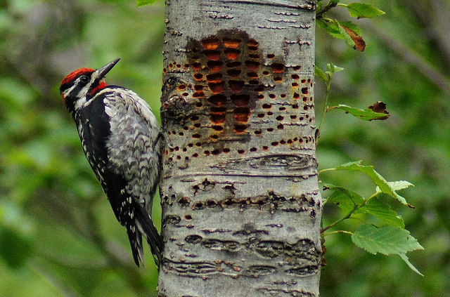 Red-naped Sapsucker female hanging out by some very impressive drilled sap-wells